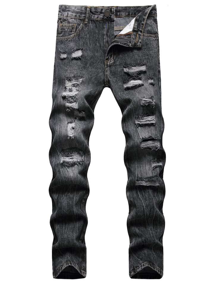 Jeans da uomo strappati, consumati, lavati con candeggina