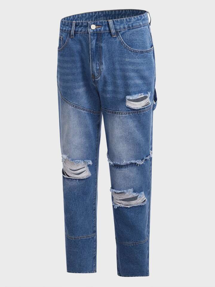 Jeans da uomo Tasca Strappato Cerniera Colore unico