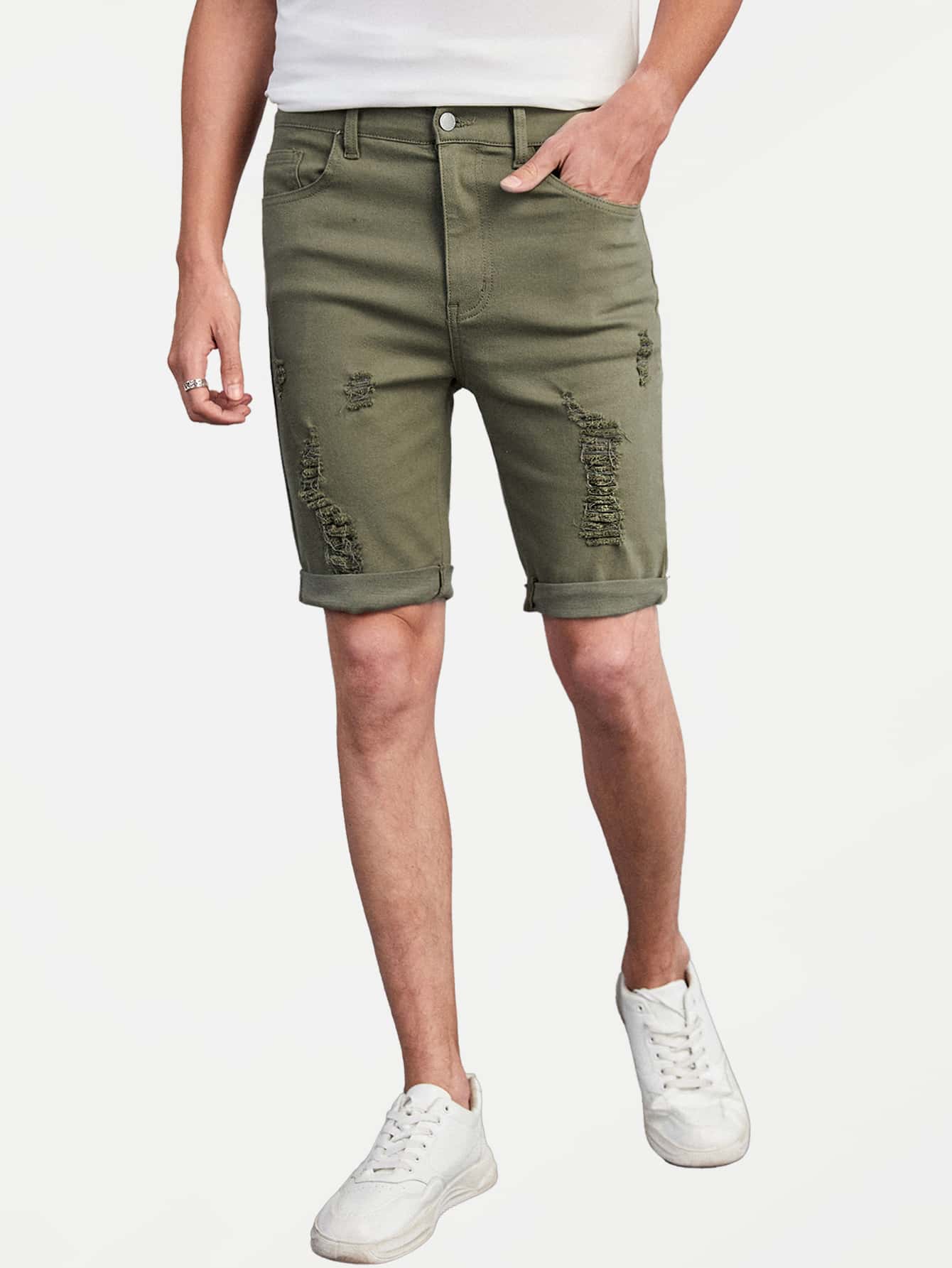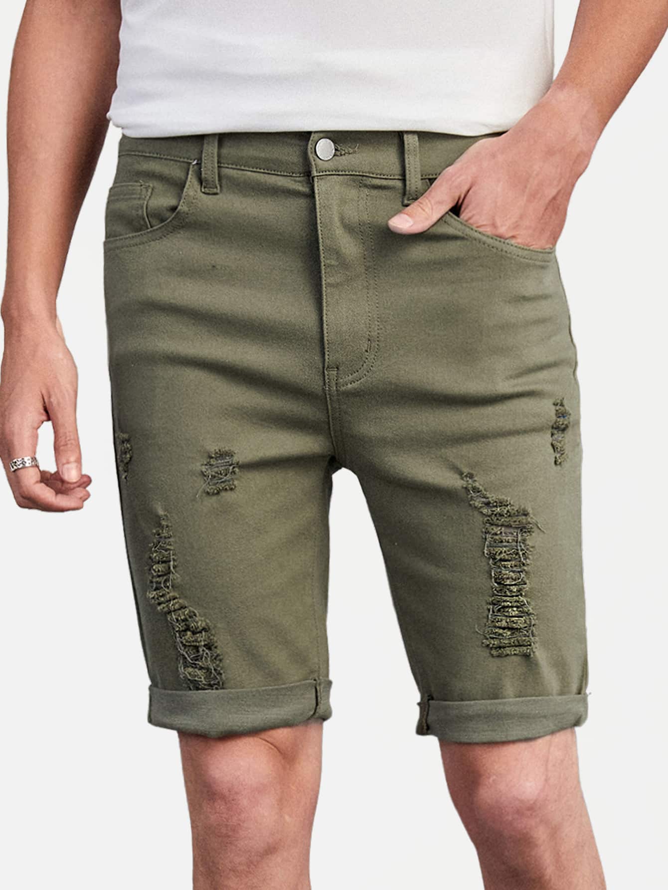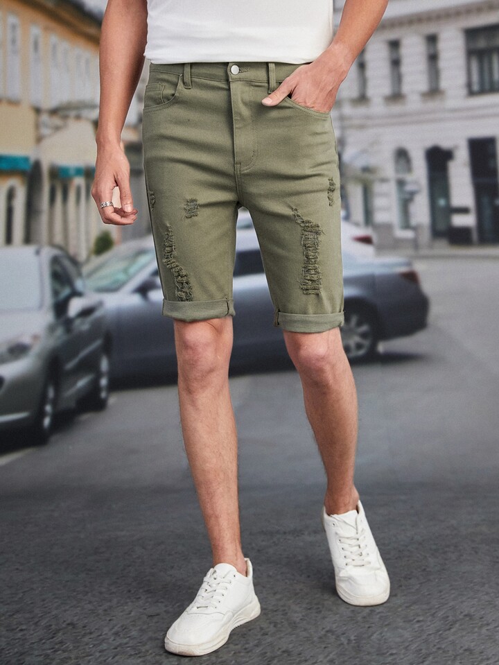 Uomo Shorts in denim con strappati sfrangiato tasca inclinata