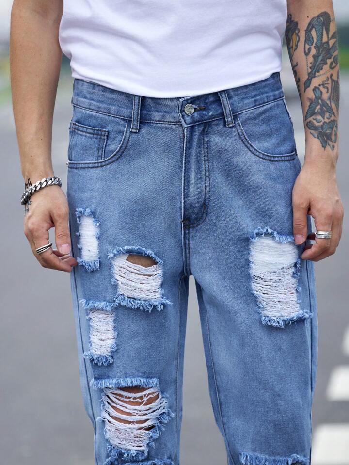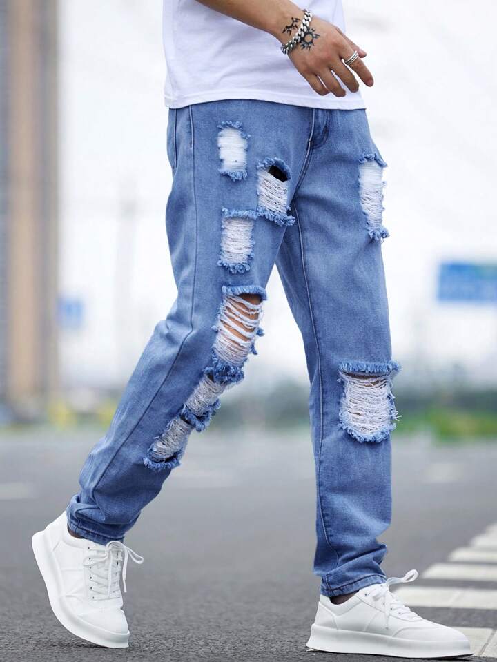 Uomo Jeans a gamba dritta con strappati sfrangiato