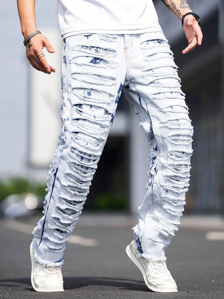 Uomo Jeans a gamba dritta con strappati sfrangiato