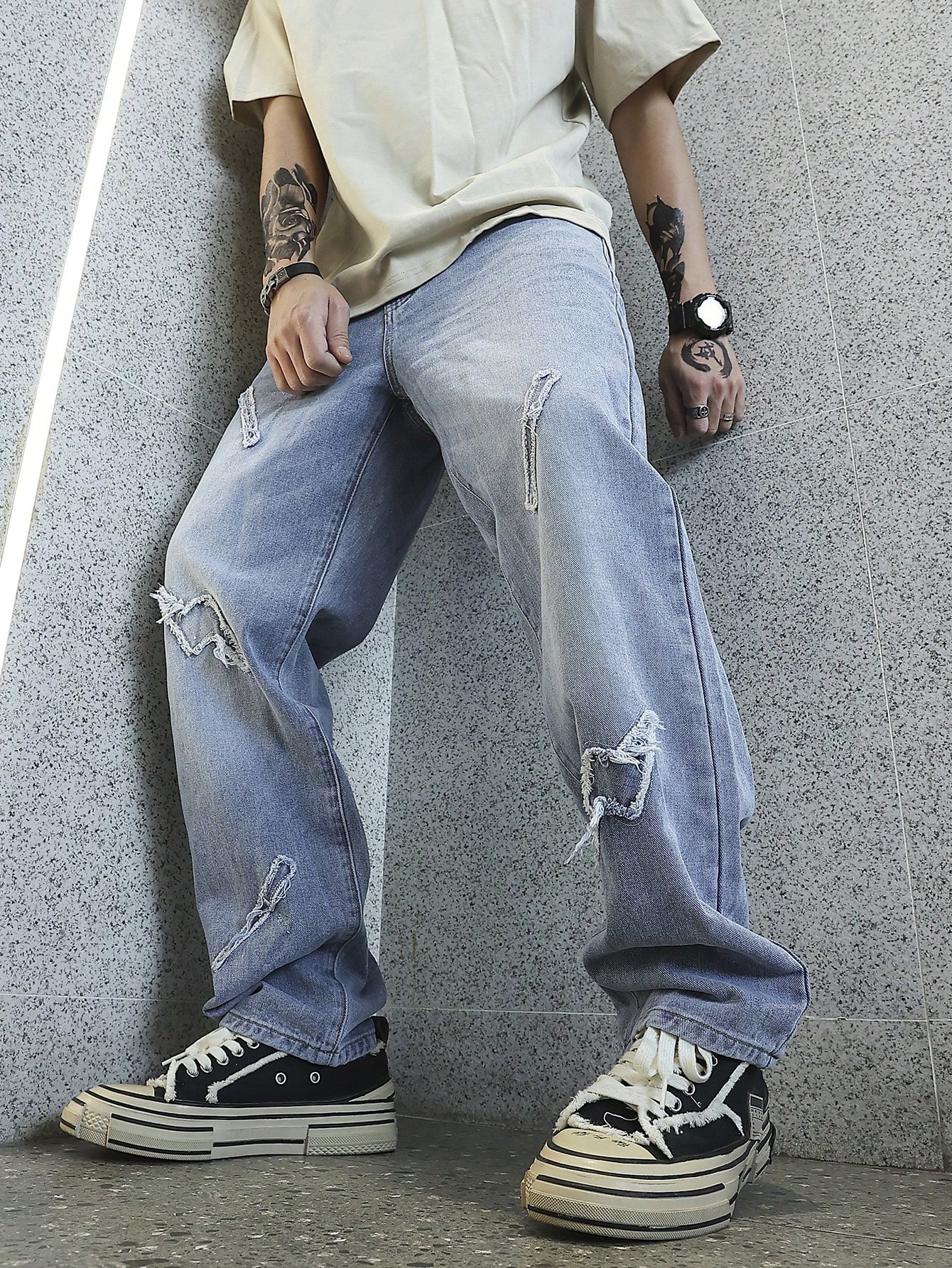 Uomo Jeans a gamba dritta con strappati sfrangiato
