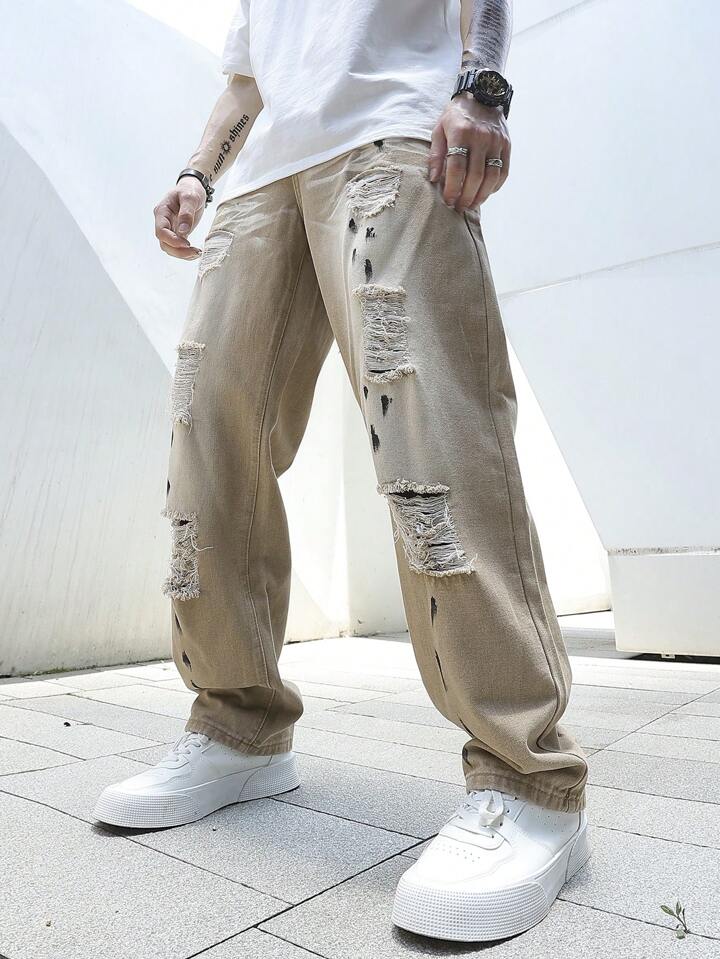Uomo Jeans a gamba dritta con strappati sfrangiato