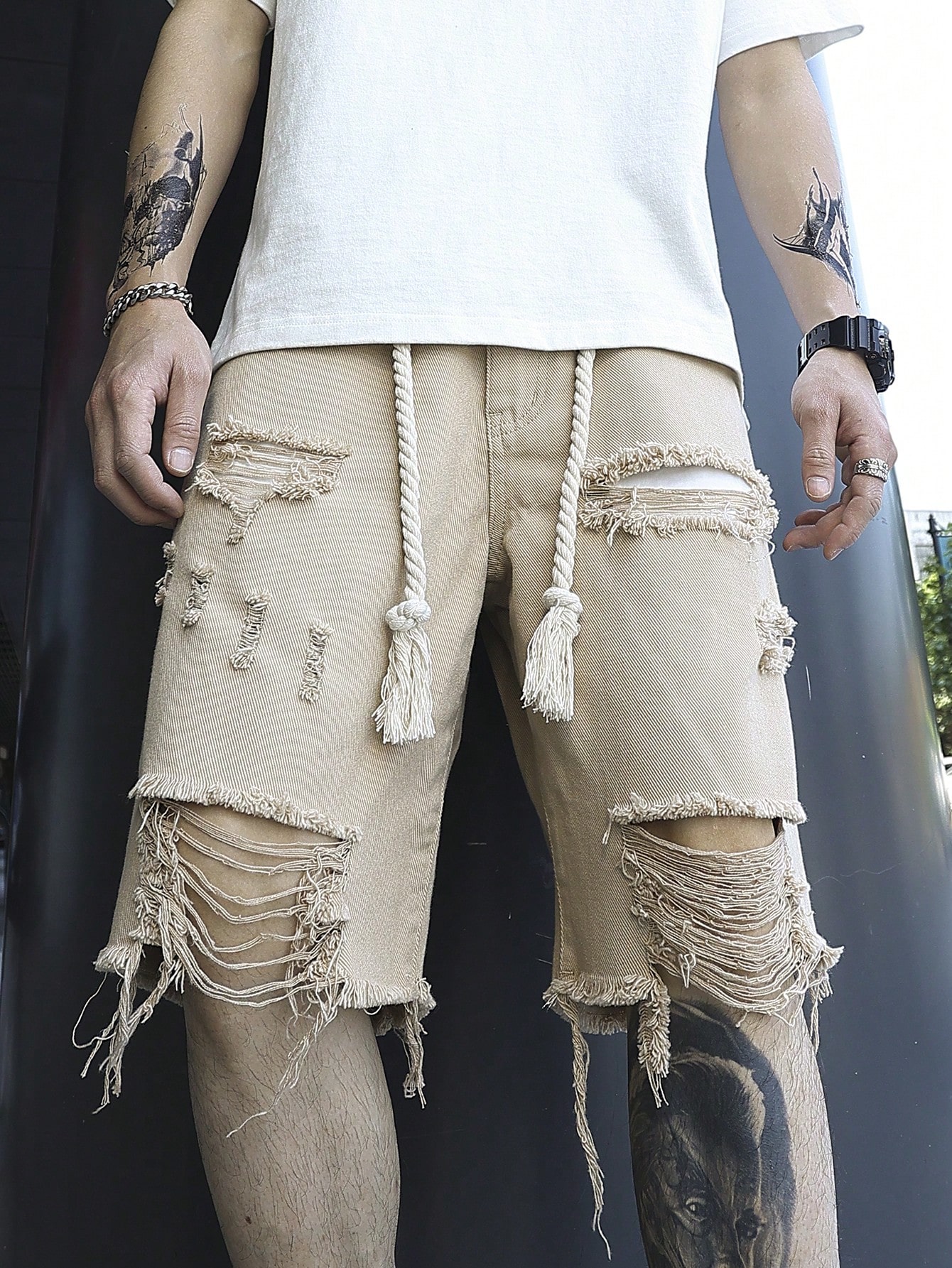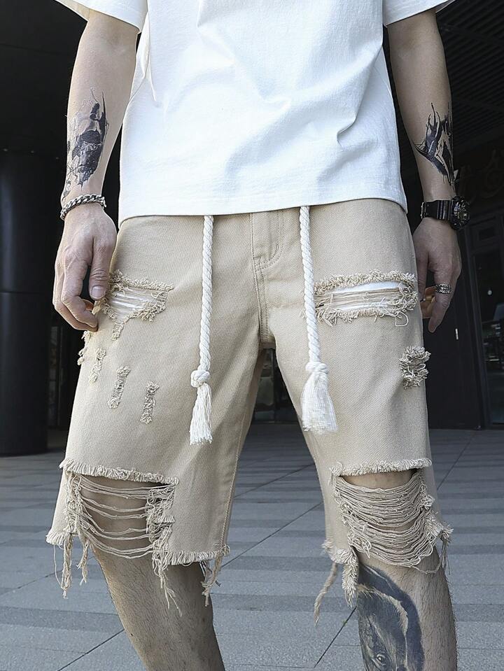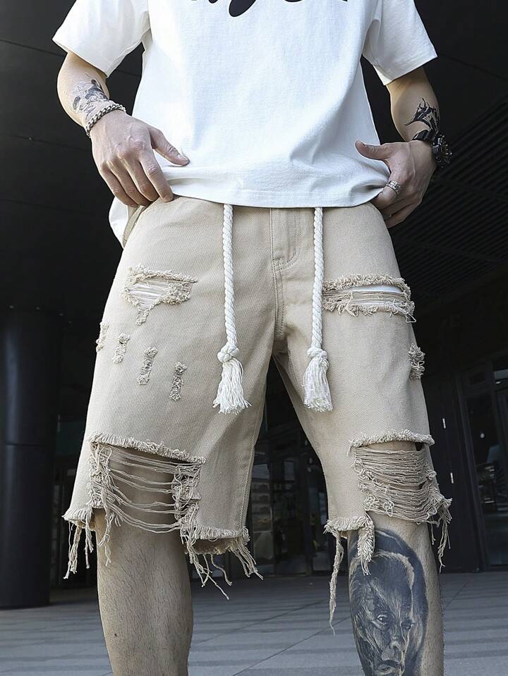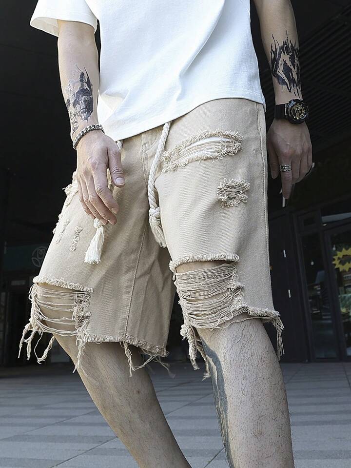 Uomo Shorts in denim cotone con strappati orlo con frange