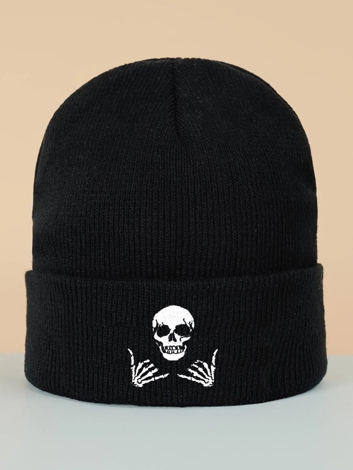 Berretto a cuffia da uomo con ricamo di mano scheletrica e teschio, adatto per la vita quotidiana, lo stile di strada, Ognissanti e l'abbigliamento autunnale