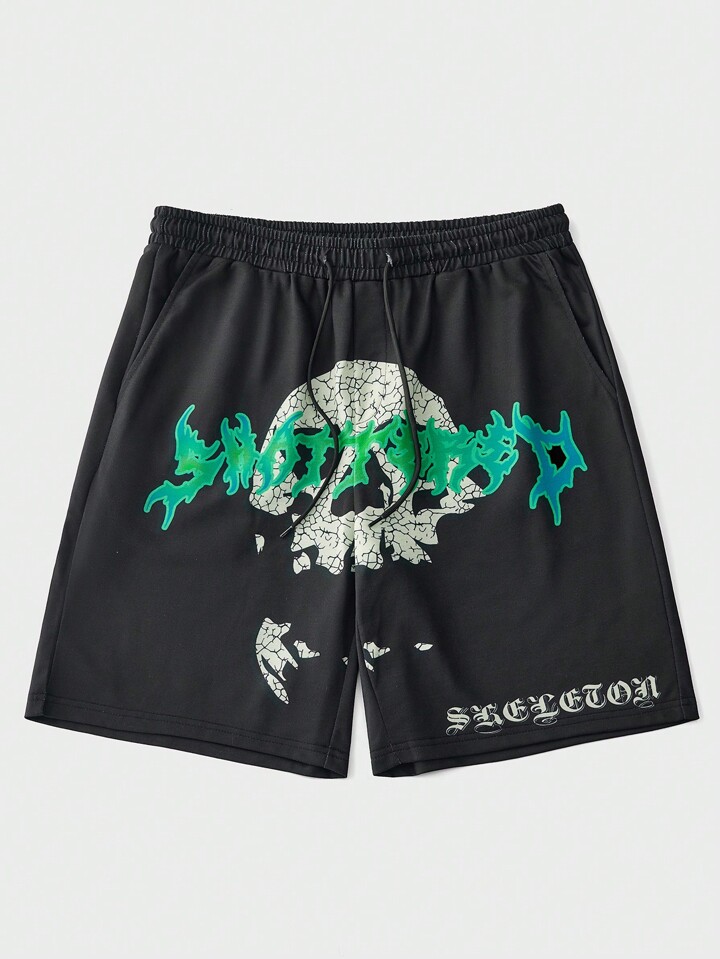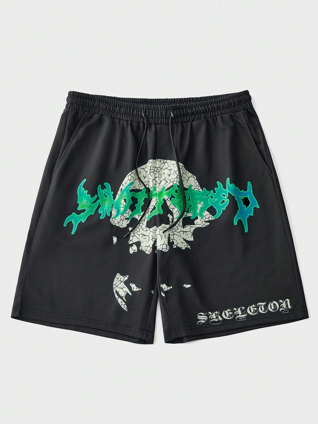 Ragazzi Shorts teschio con grafica lettera con coulisse a vita