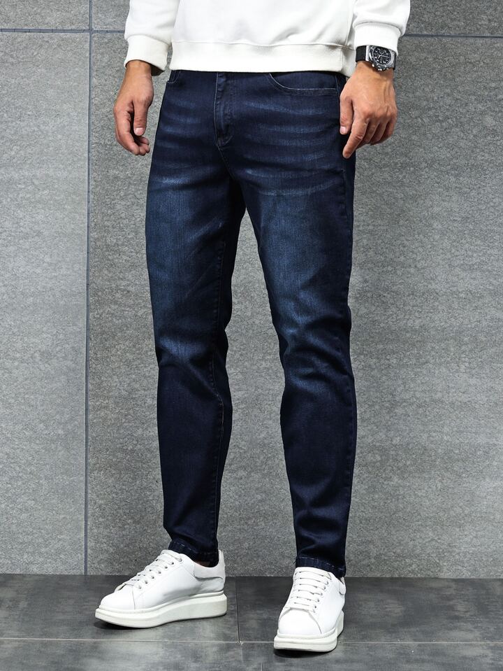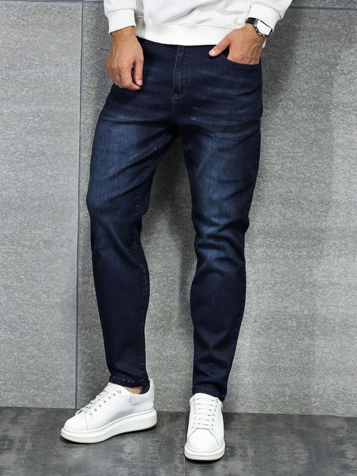Jeans in cotone da uomo con tasche inclinate, tinta unita blu scuro, slim fit, lavati, cargo lunghi, adatti come regalo per marito o fidanzato