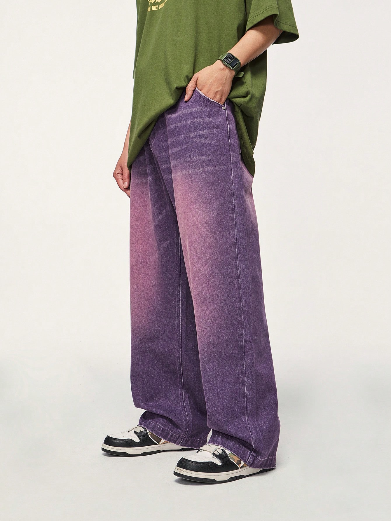 Uomo Jeans tasca inclinata gamba ampia