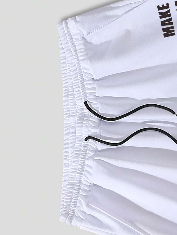 Ragazzi Shorts con grafica slogan bordo a contrasto con coulisse a vita