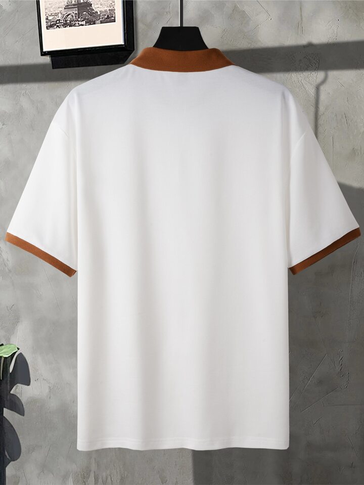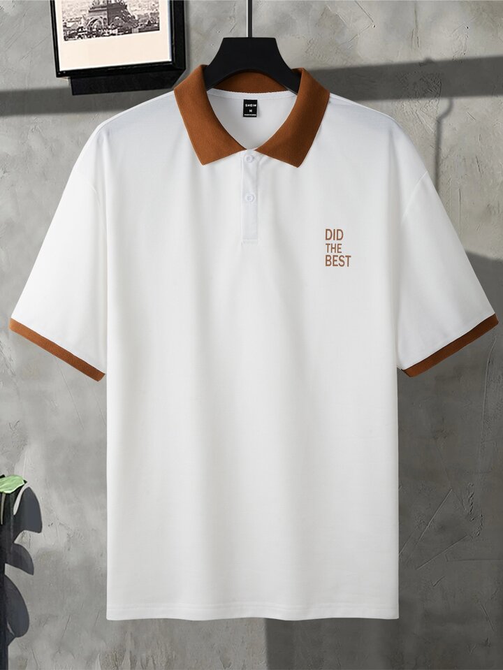 Uomo Camicia polo con grafica slogan bordo a contrasto