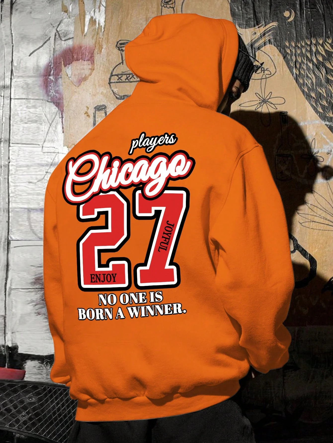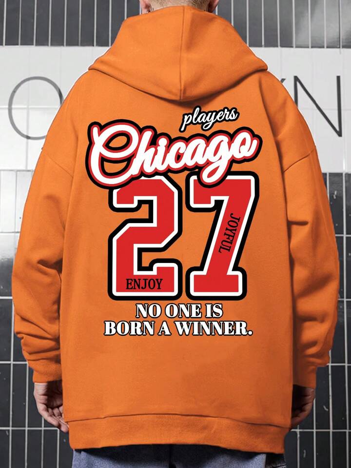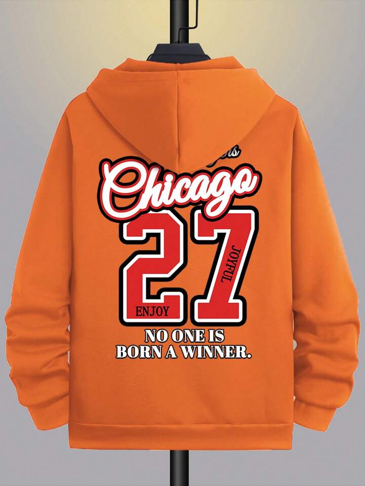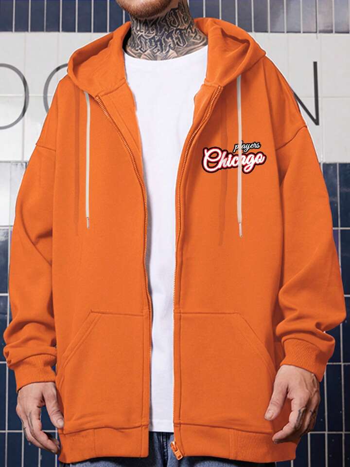 Uomo Felpa con cappuccio e zip con grafica slogan spalle cadenti con coulisse termico