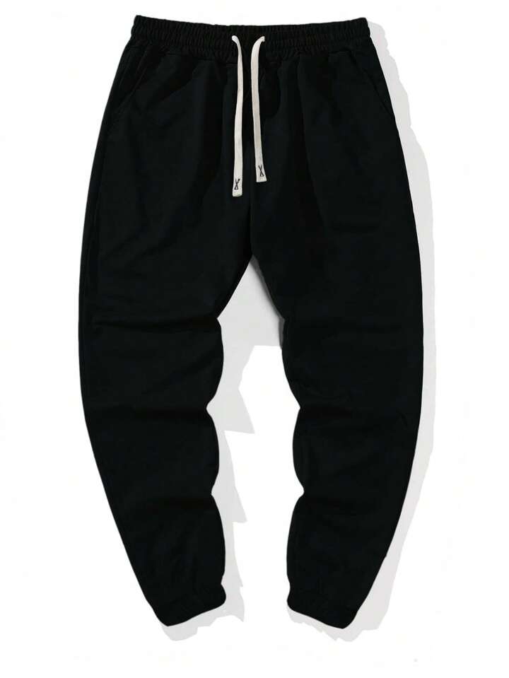 Pantaloni della tuta da uomo con vestibilità morbida, di colore unito, con coulisse in vita, per uscire, basic, pantaloni della tuta neri con coulisse, per marito, regalo per il fidanzato, joggers neri da uomo