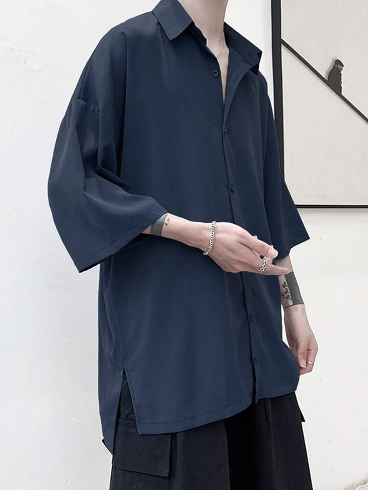 Camicia oversize da uomo con bottoni, di colore unito, senza spalline, autunnale