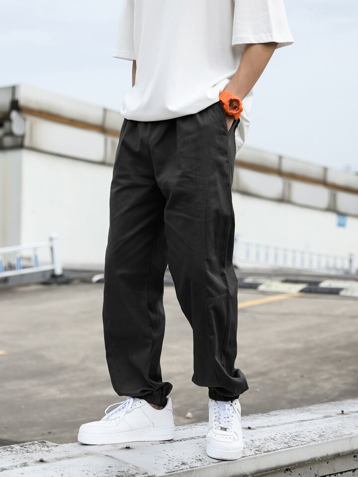 Pantaloni Uomo Con Tasche Oblique E Vita Elastica In Tinta Unita