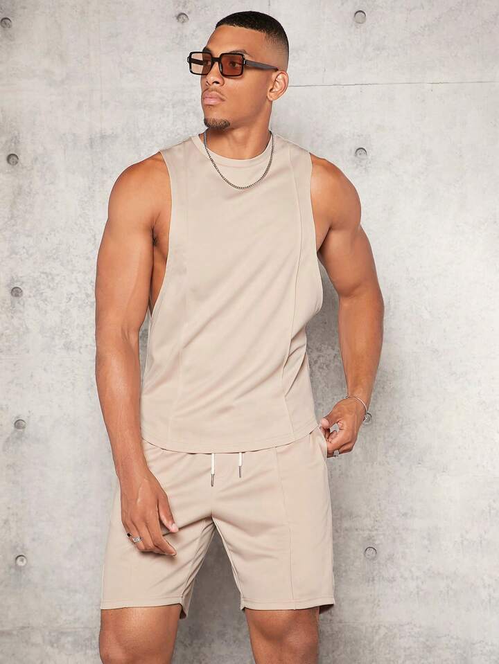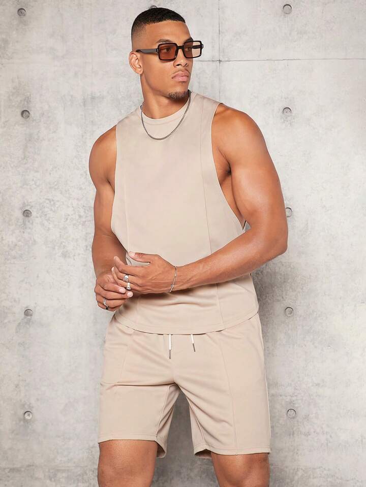 Uomo monocolore Canotta & con coulisse a vita Shorts