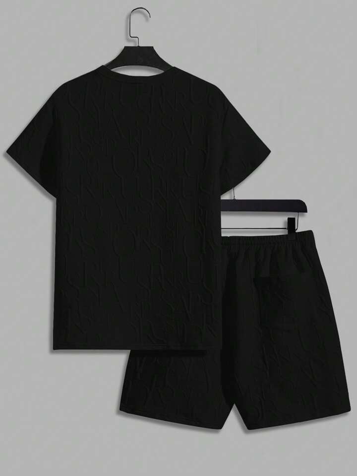 Outfit estivo da uomo composto da t-shirt tinta unita e pantaloncini con vita regolabile