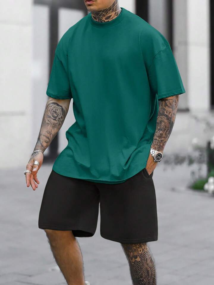 Set Di T-shirt & Pantaloncini A Tinta Unita Da Uomo Con Taglio Ampio