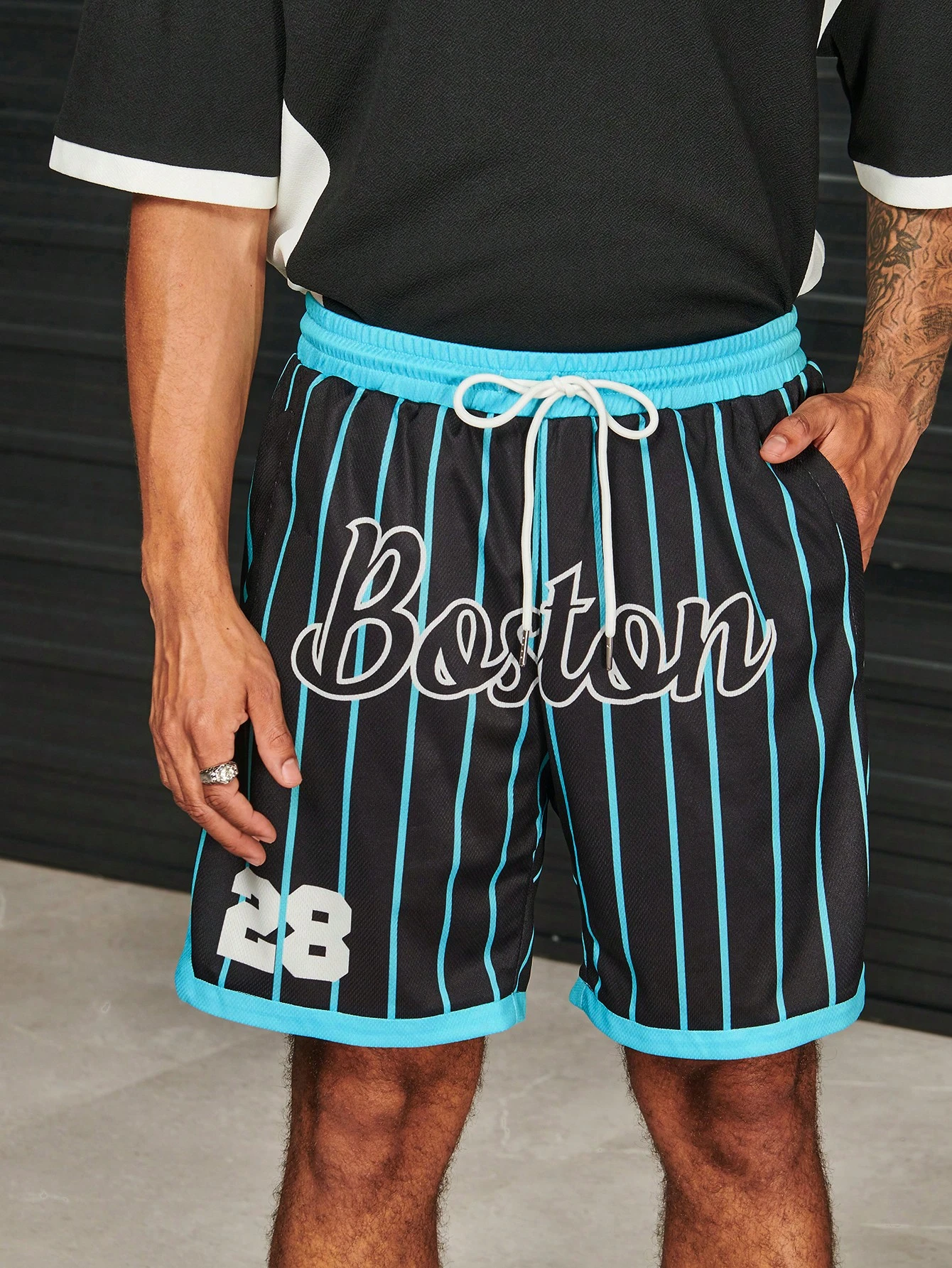 Uomo Shorts con grafica righe e lettera con coulisse a vita
