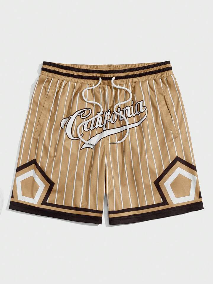 Uomo Shorts con grafica righe e lettera con coulisse a vita