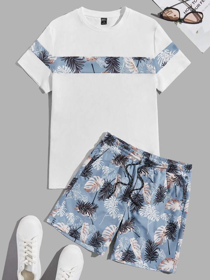 Uomo con stampa tropicale Maglietta & con coulisse a vita Shorts