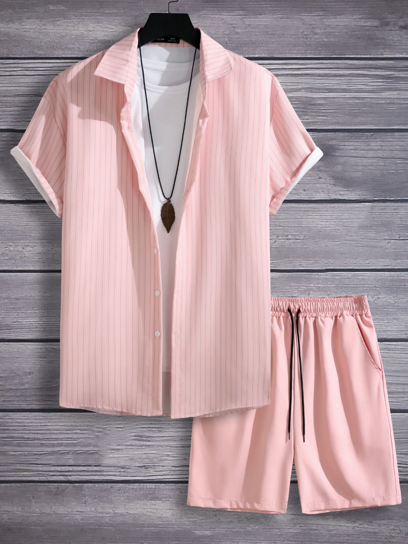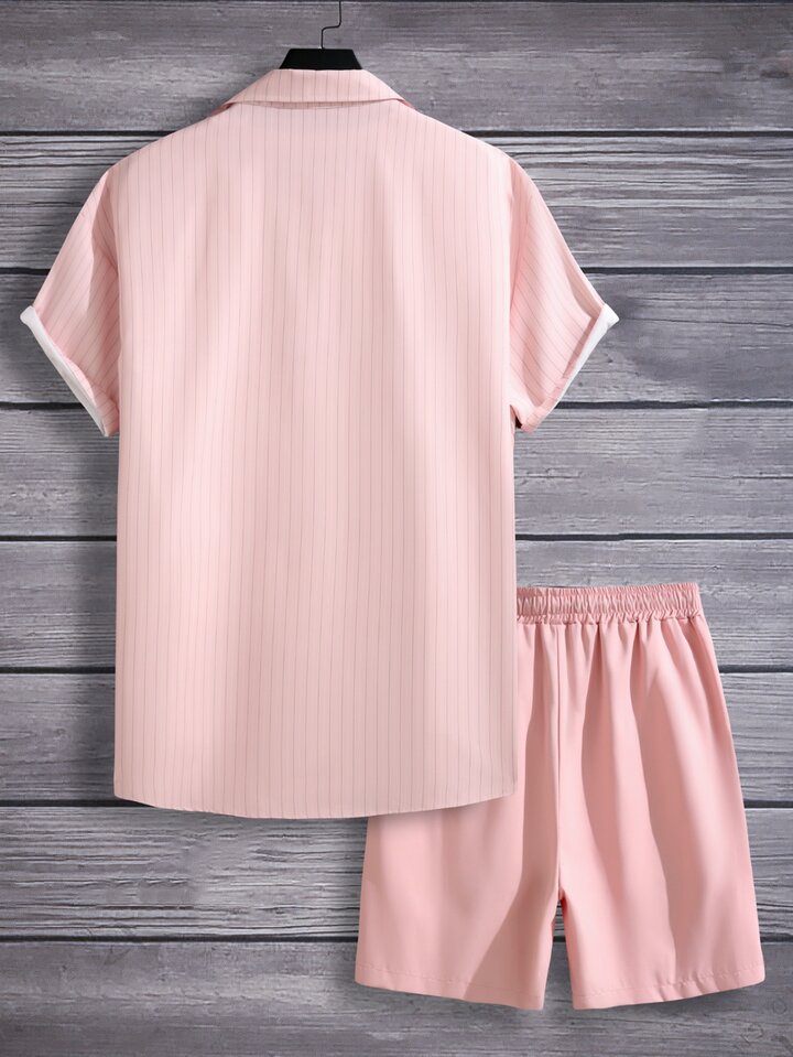 Uomo a righe verticali Camicia & con coulisse a vita Shorts senza maglietta