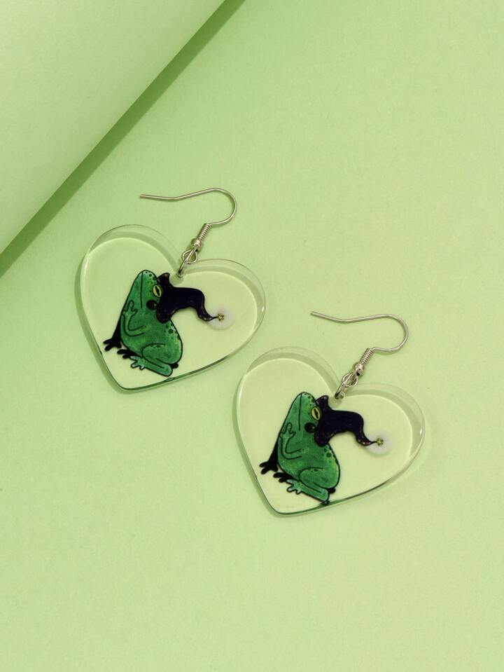 H3IDI Orecchini pendenti motivo rana decorato a cuore