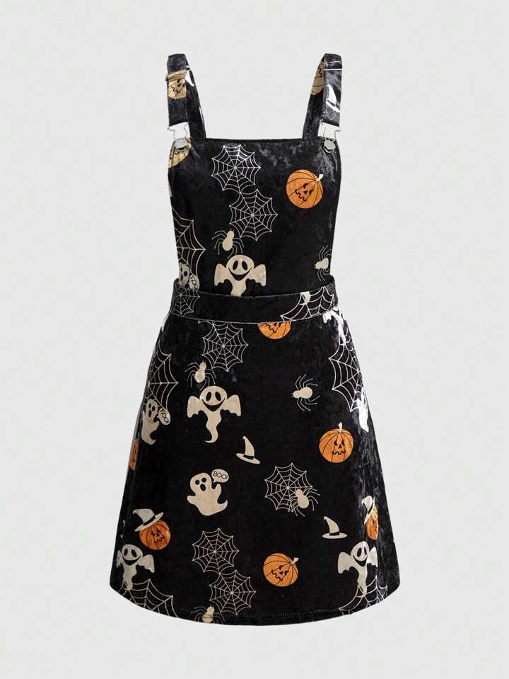 Abito salopette con stampa halloween senza maglietta