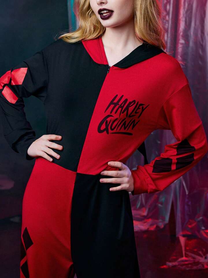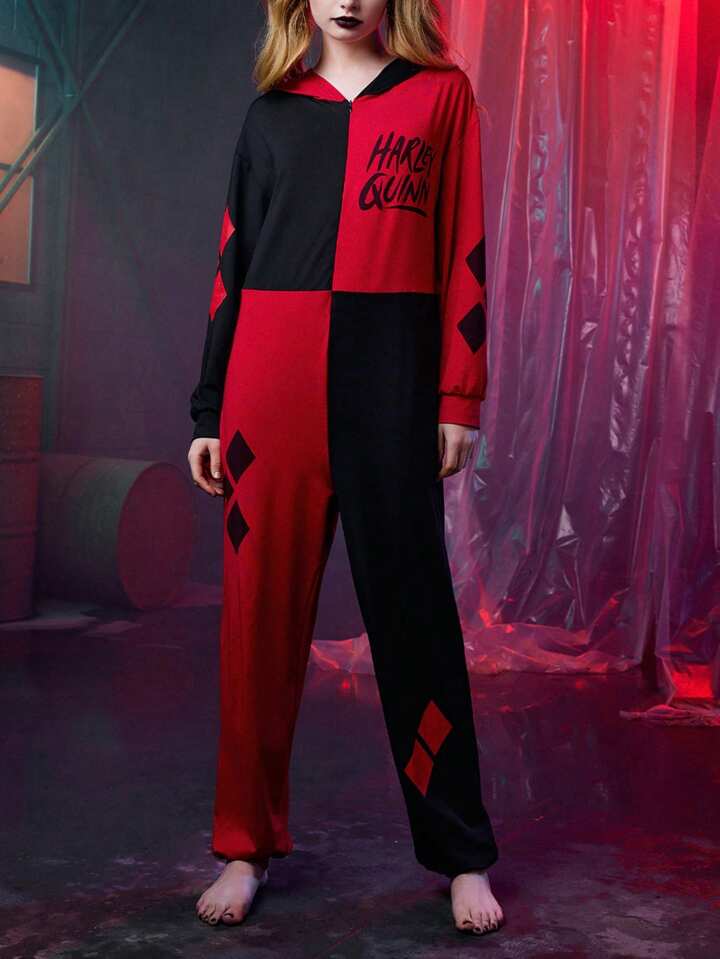 Harley Quinn | ROMWE Jumpsuit da notte con grafica lettera bicolore con cappuccio