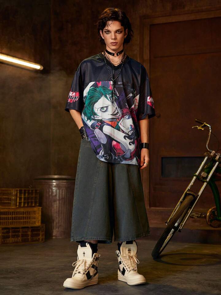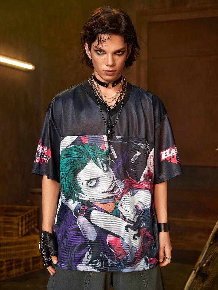 Harley Quinn | ROMWE Maglietta a maniche corte da uomo con grafica a contrasto e rete sportiva