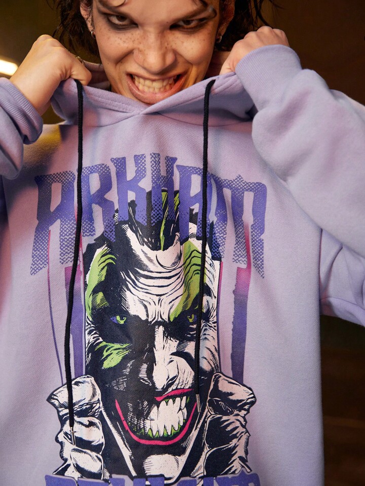 Harley Quinn | ROMWE ROMWE Avant Felpa con cappuccio casual da uomo con stampa di lettere e figure, spalle a goccia, laccetto, per primavera/autunno