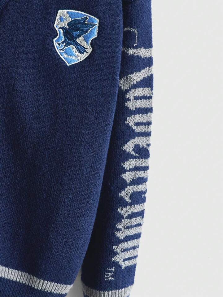 Harry Potter | ROMWE Cardigan Oversize A Maniche Lunghe Con Bottoni Frontali, Ricamo Grafico Rauenclaw Con Spalle Cadenti
