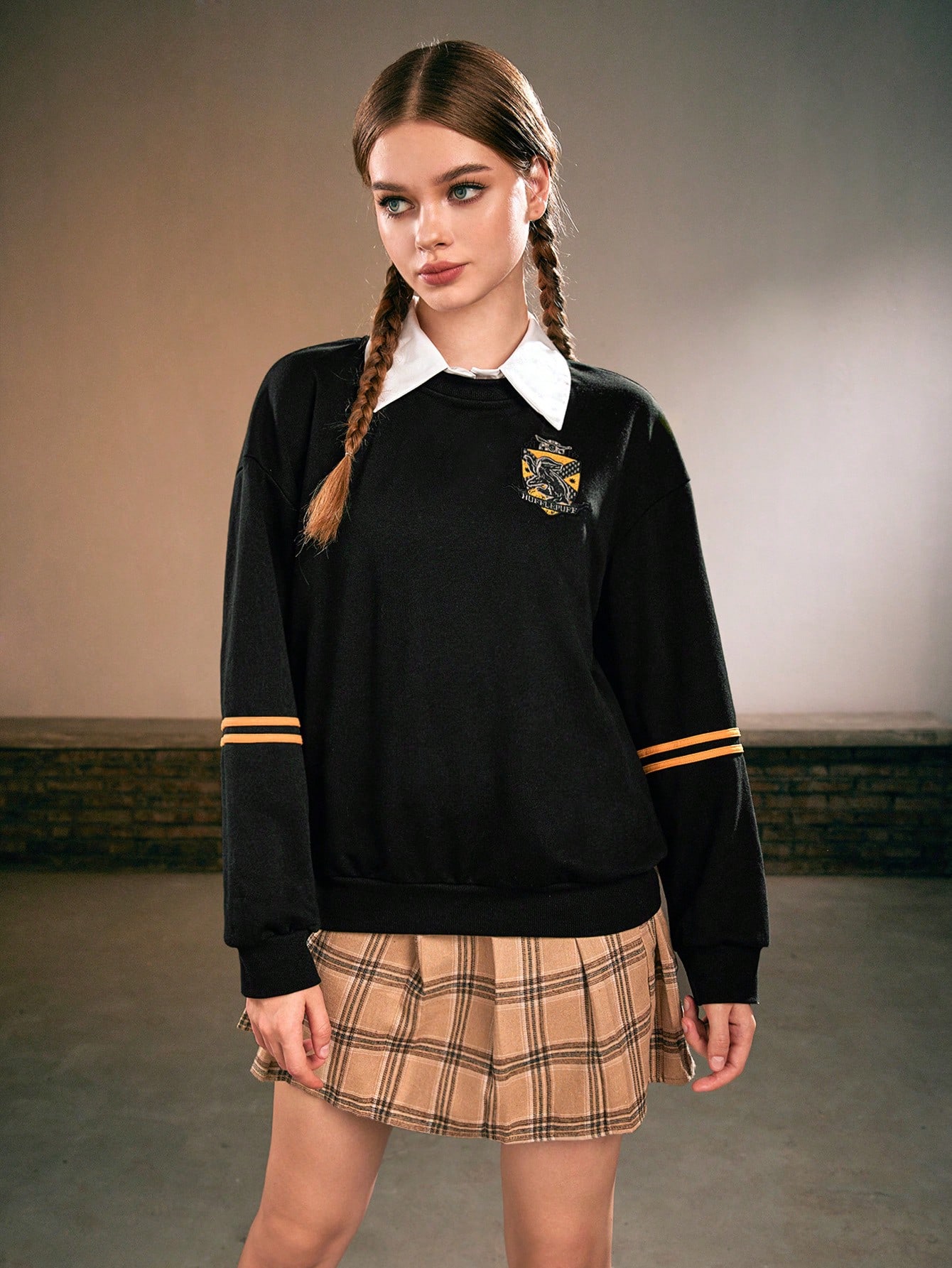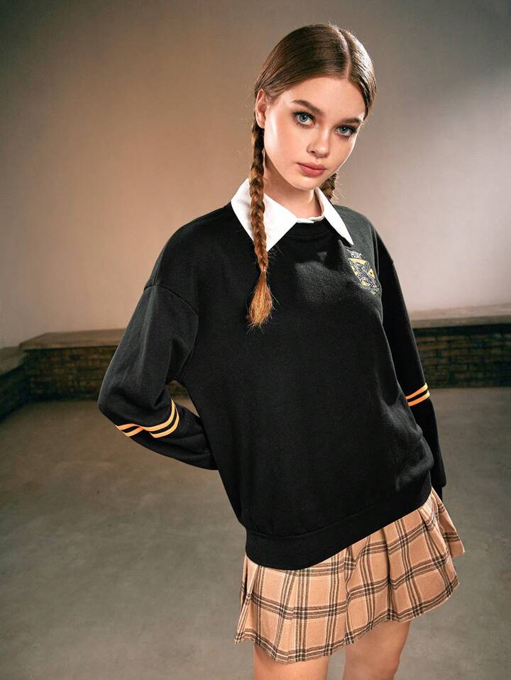 Harry Potter | ROMWE Felpe spliced colletto con ricamo lettera spalle cadenti