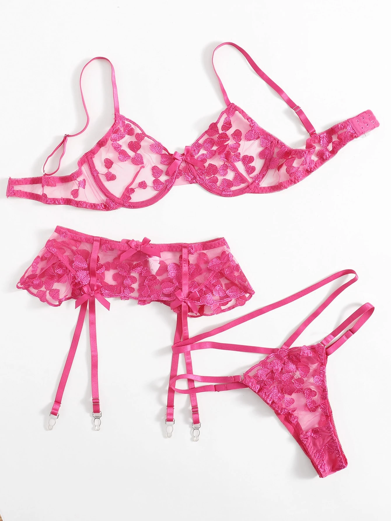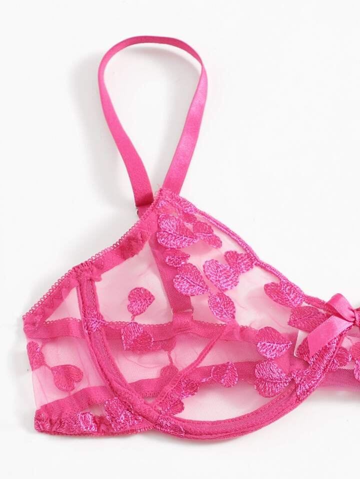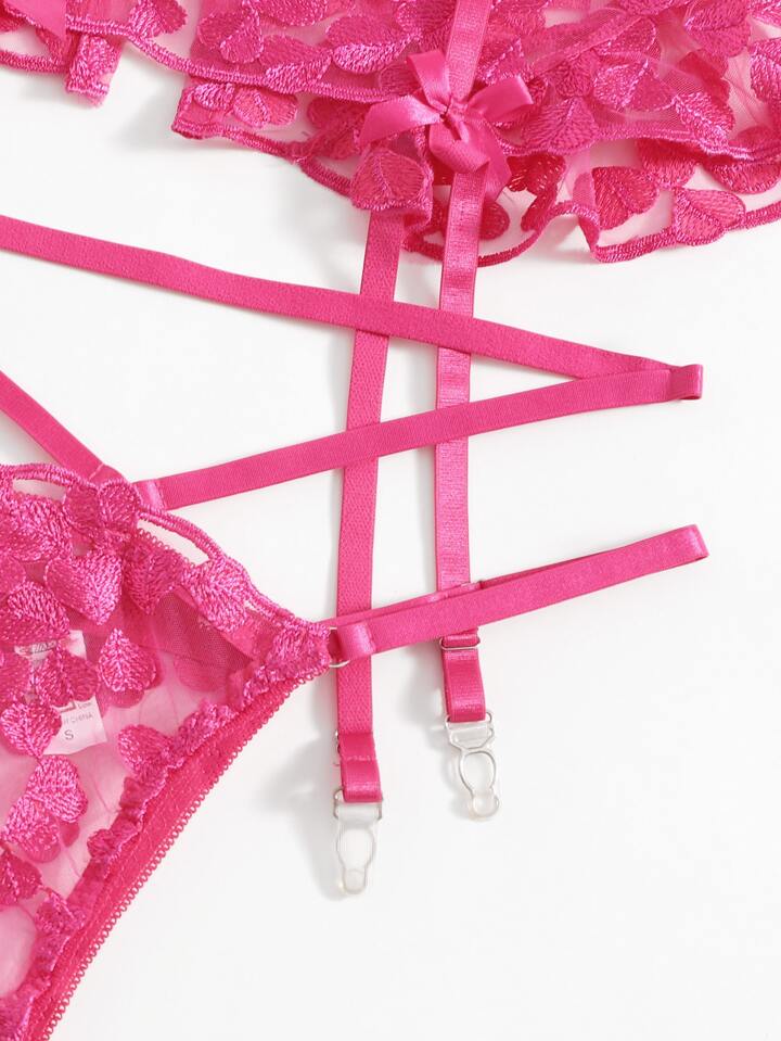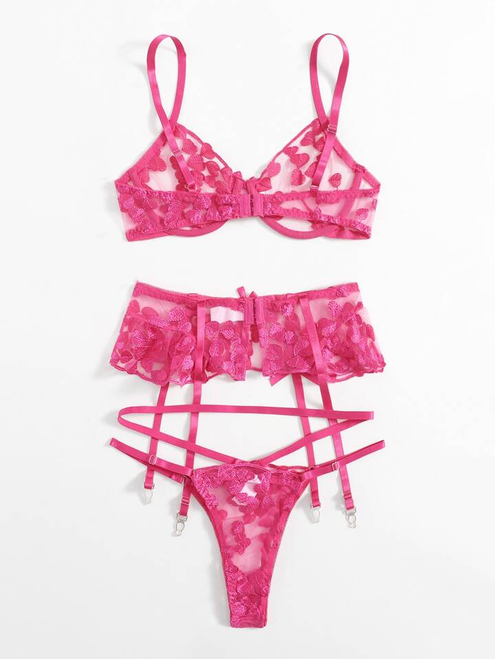 Set lingerie con ricamo cuore con ferretto giarrettiera
