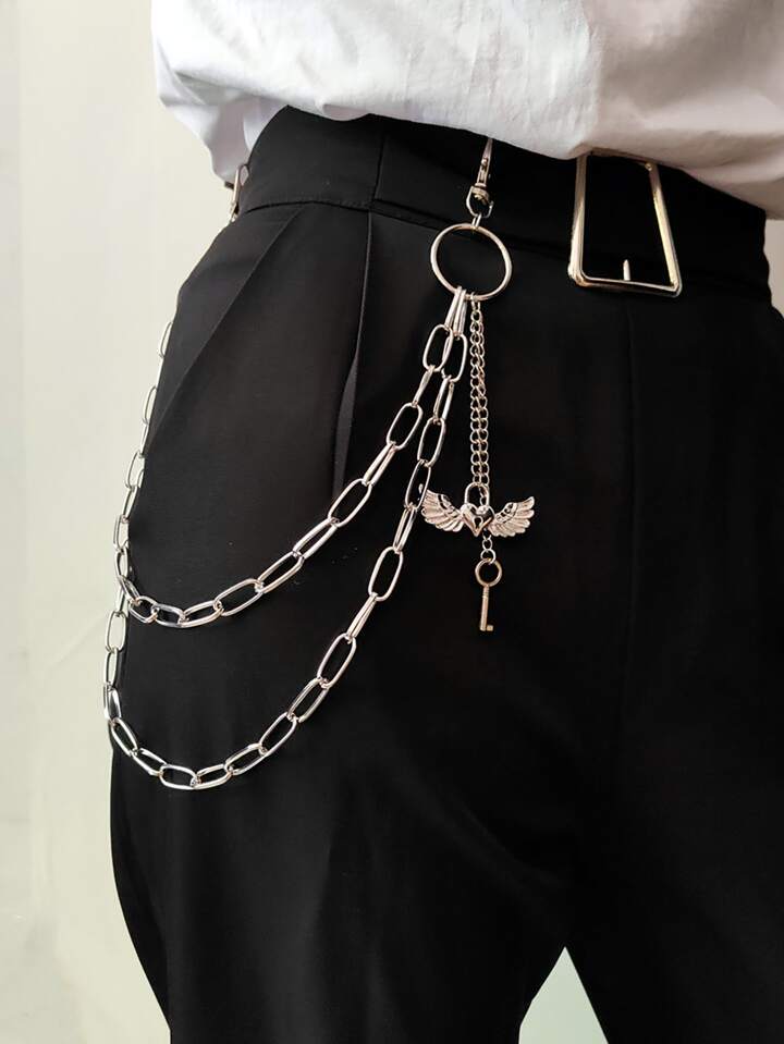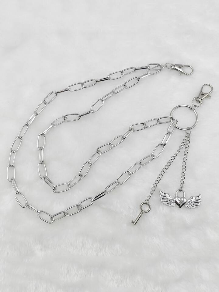 Catena per pantaloni a più strati con ciondoli a forma di lucchetto e chiave a cuore