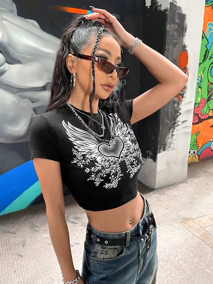 Maglietta corta cuore & stampa vegetale