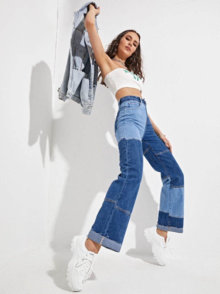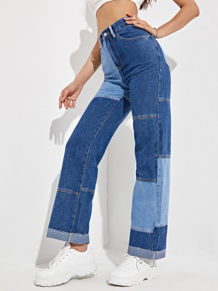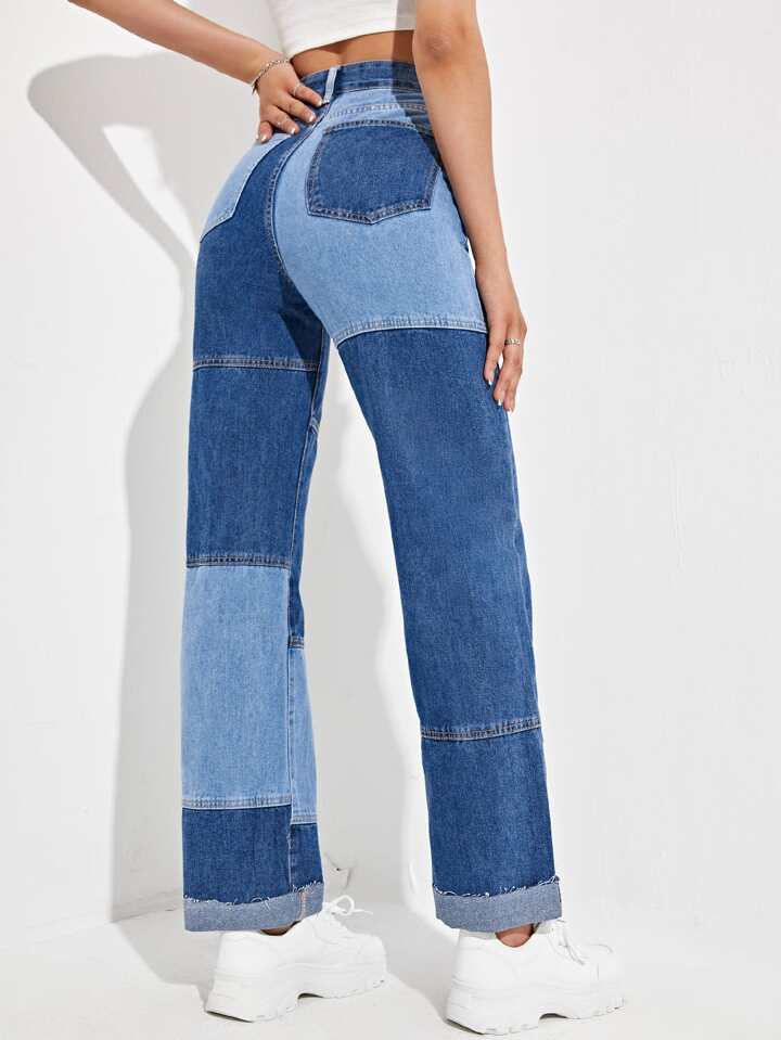Jeans Bottoni Tasca Orlo sfrangiato Cerniera Blocchi di colore