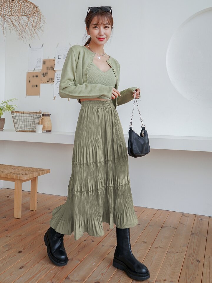 Gonna con vita alta, balze e orlo plissettato, abbigliamento per il ritorno a scuola in autunno