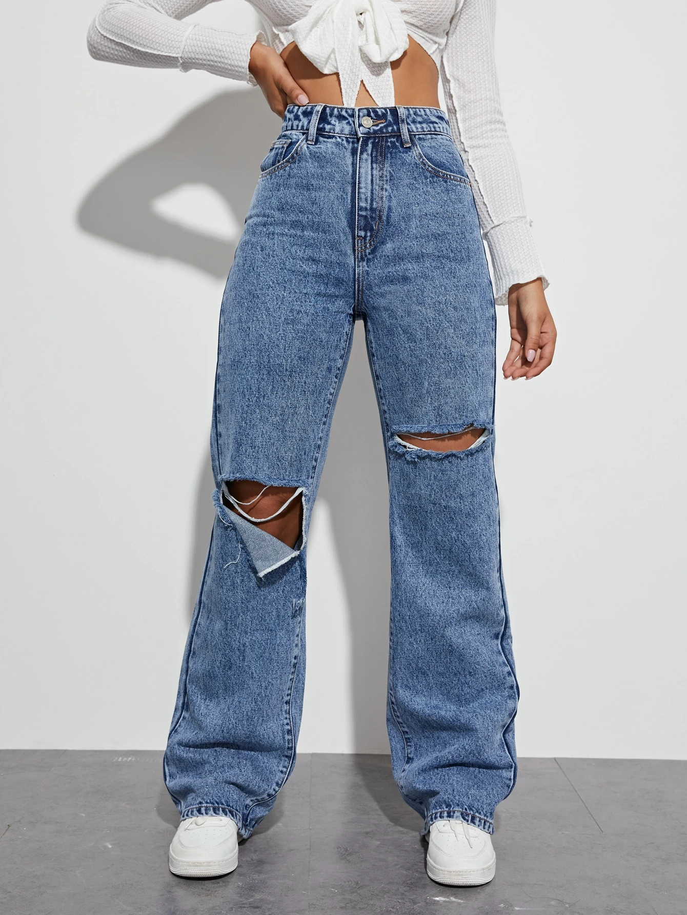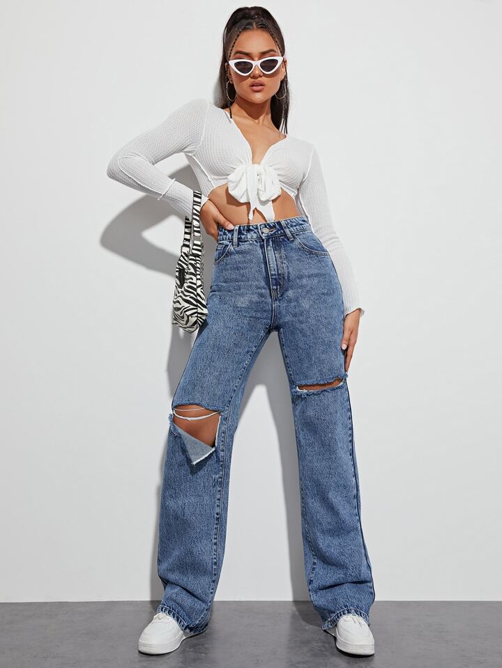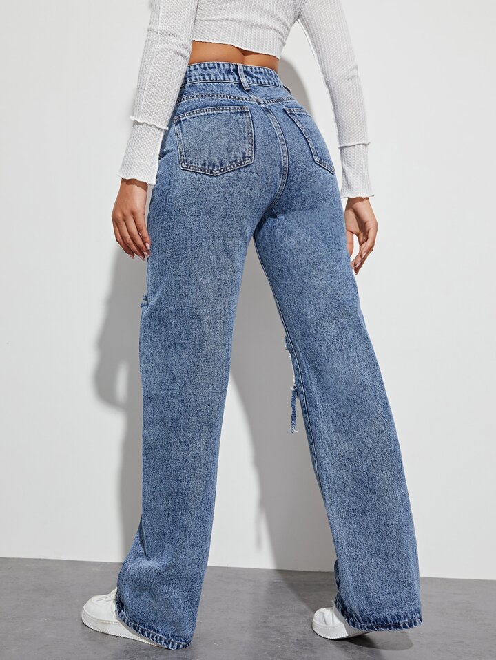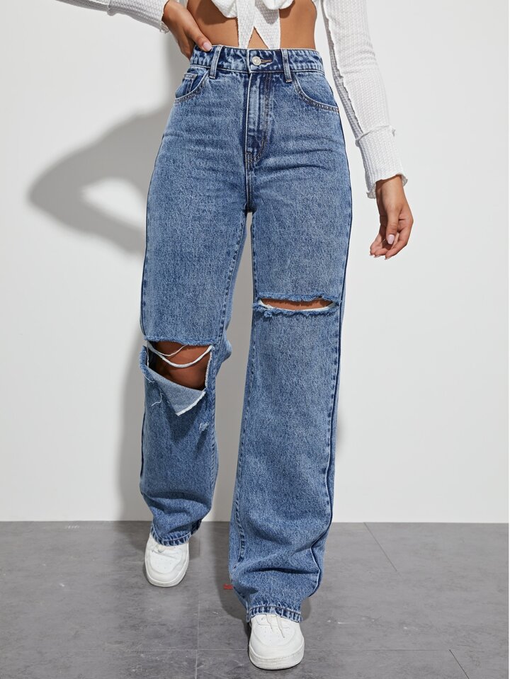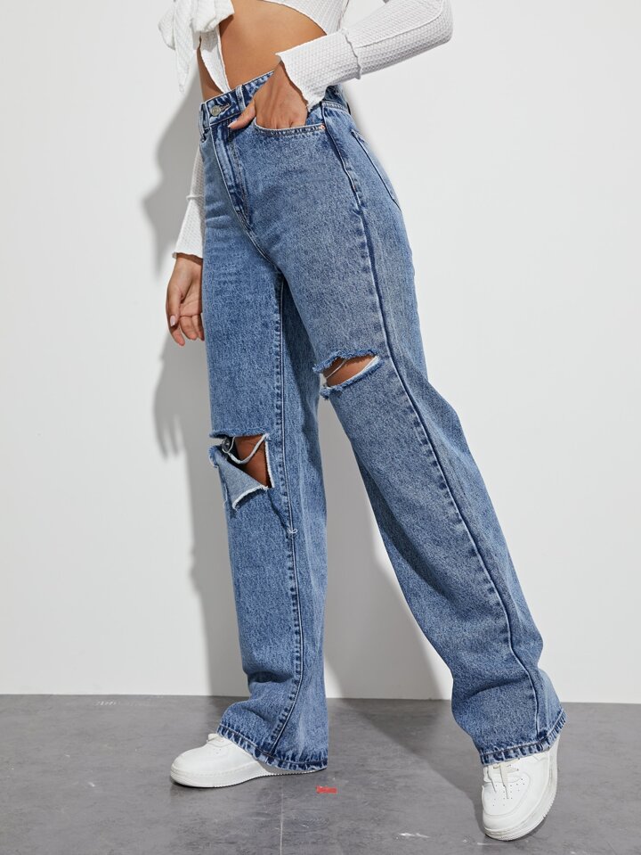 Jeans vita alta con strappati boyfriend
