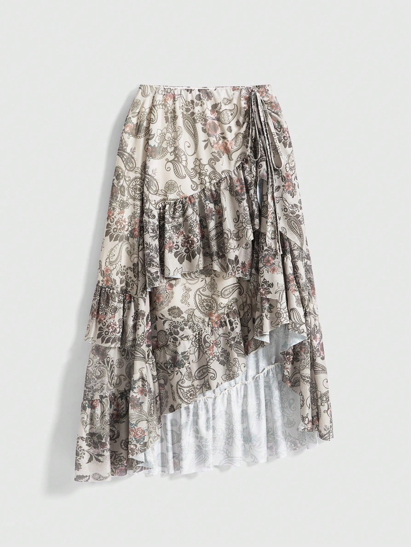 Hippie Gonna elegante da donna con balze e orlo asimmetrico in stile boho