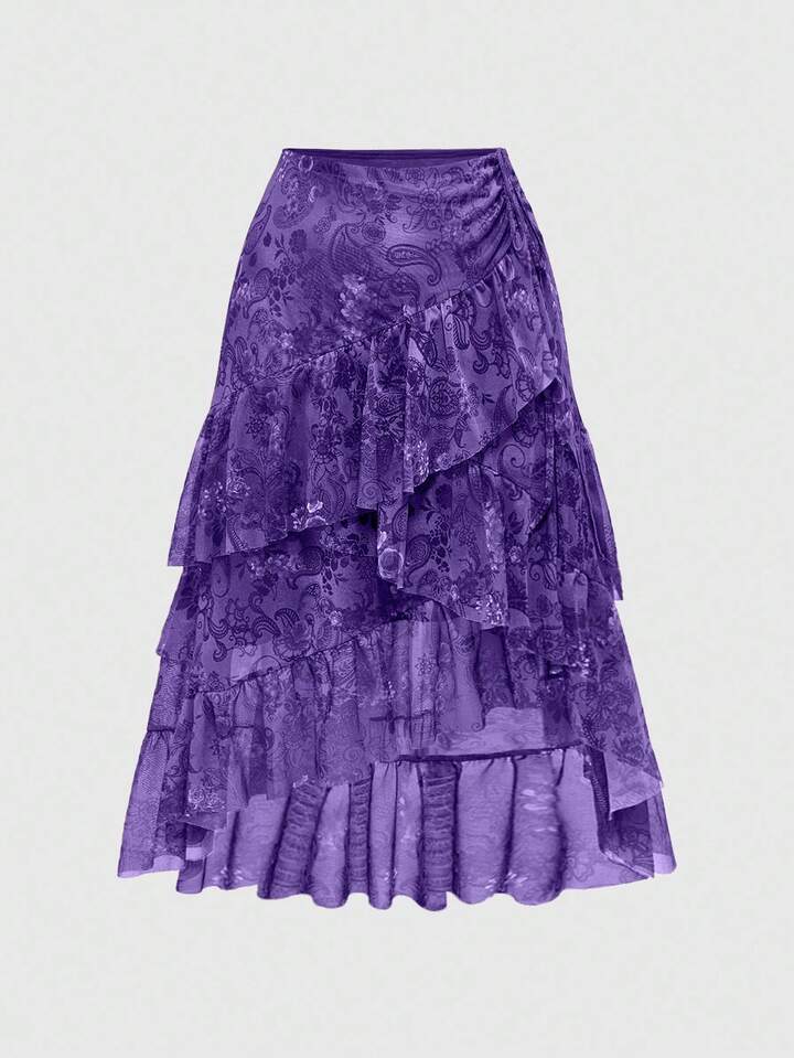 Hippie Gonna di moda con stampa di anacardi, stile boho, con volant e strati