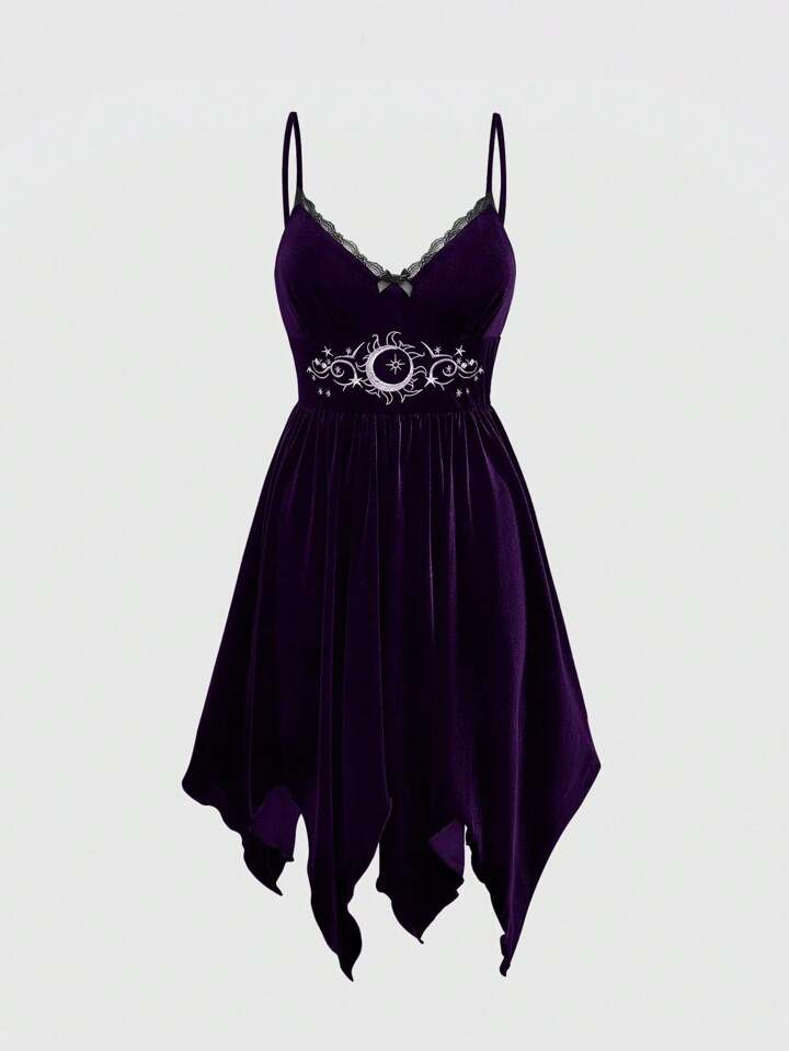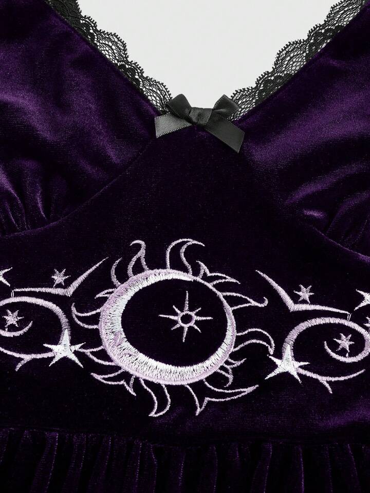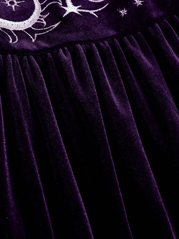 Hippie Abito canotta asimmetrico in velluto con ricamo di stelle e lune dark gothic