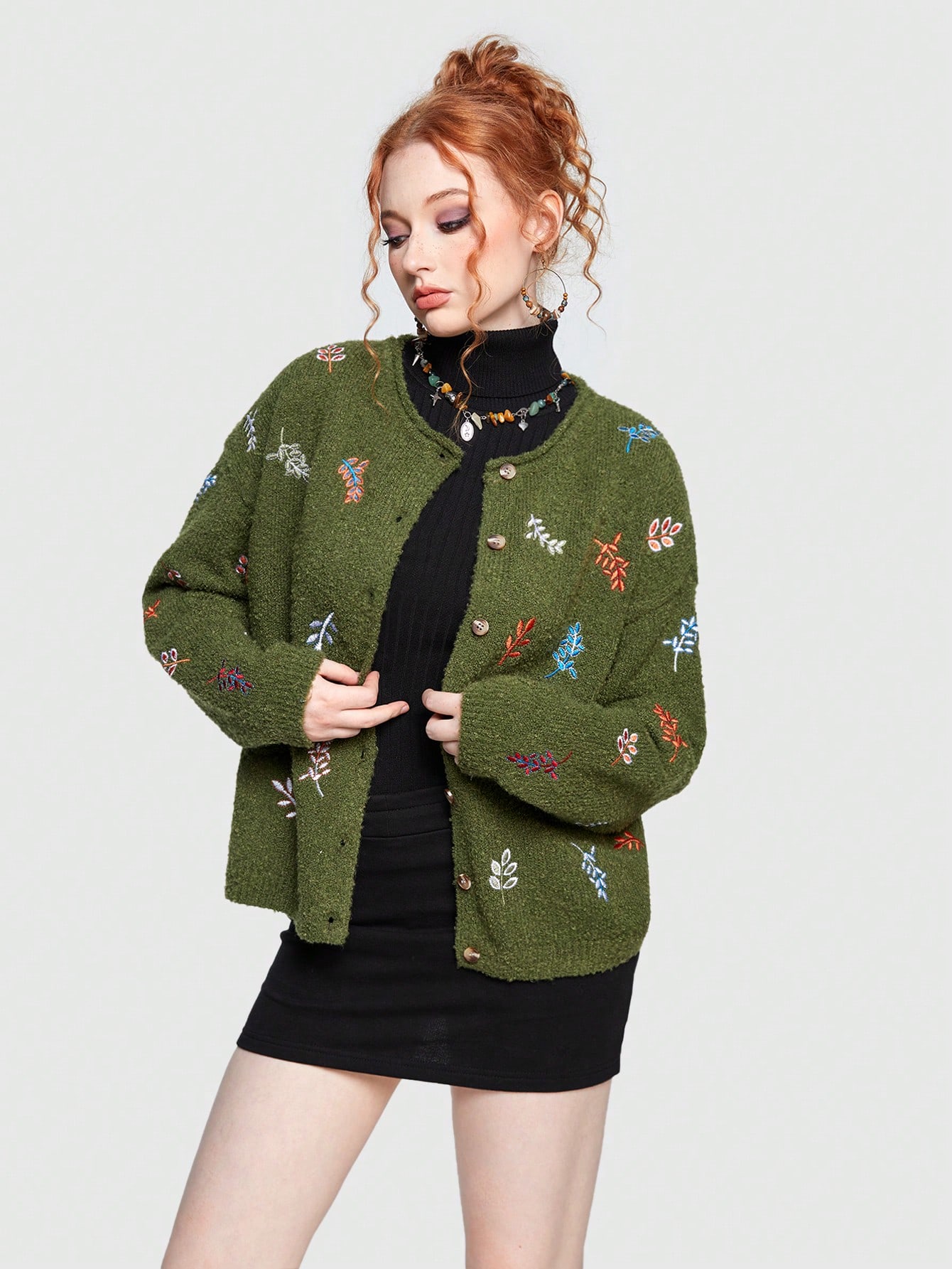 Hippie Cardigan Con Spalle Scese Con Motivo A Foglie