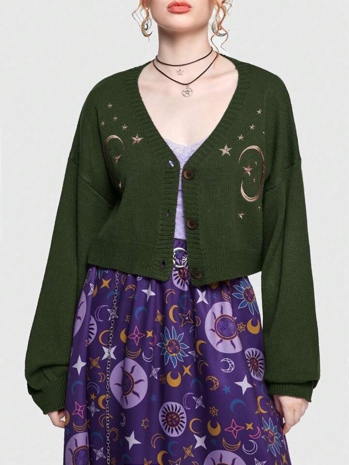 Hippie Cardigan Da Donna Ricamato Con Luna E Stelle