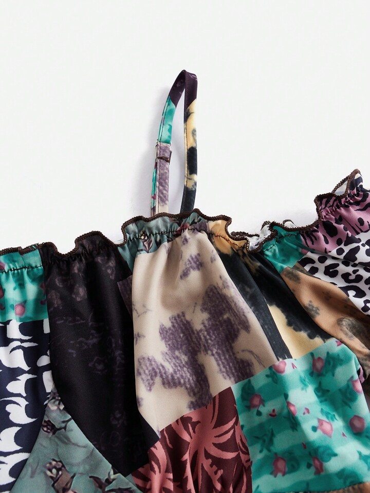 Hippie Camicetta stampa patchwork con spalle scoperte