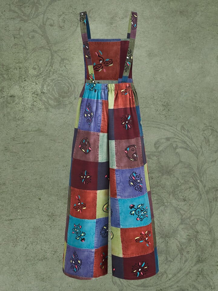 Hippie Jumpsuit salopette stampa patchwork gamba ampia