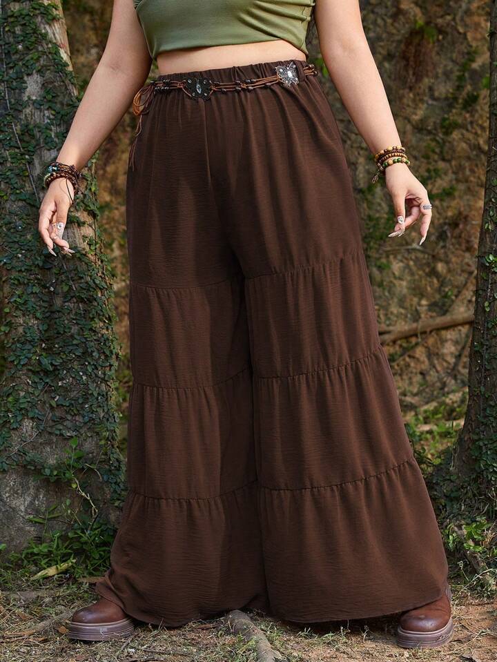 Hippie Taglie Forti Pantaloni a gamba larga con volant senza cintura