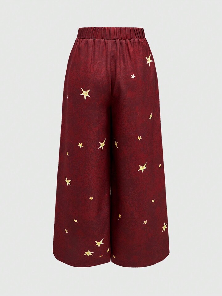 Pantaloni casual stile hippy con laccetti e stampa a stelle e lune