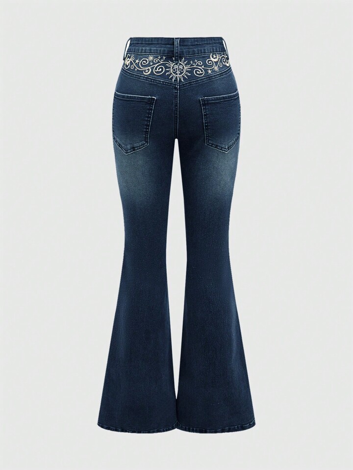 Hippie Jeans casual da donna con tasche e motivo stampato con bottoni frontali