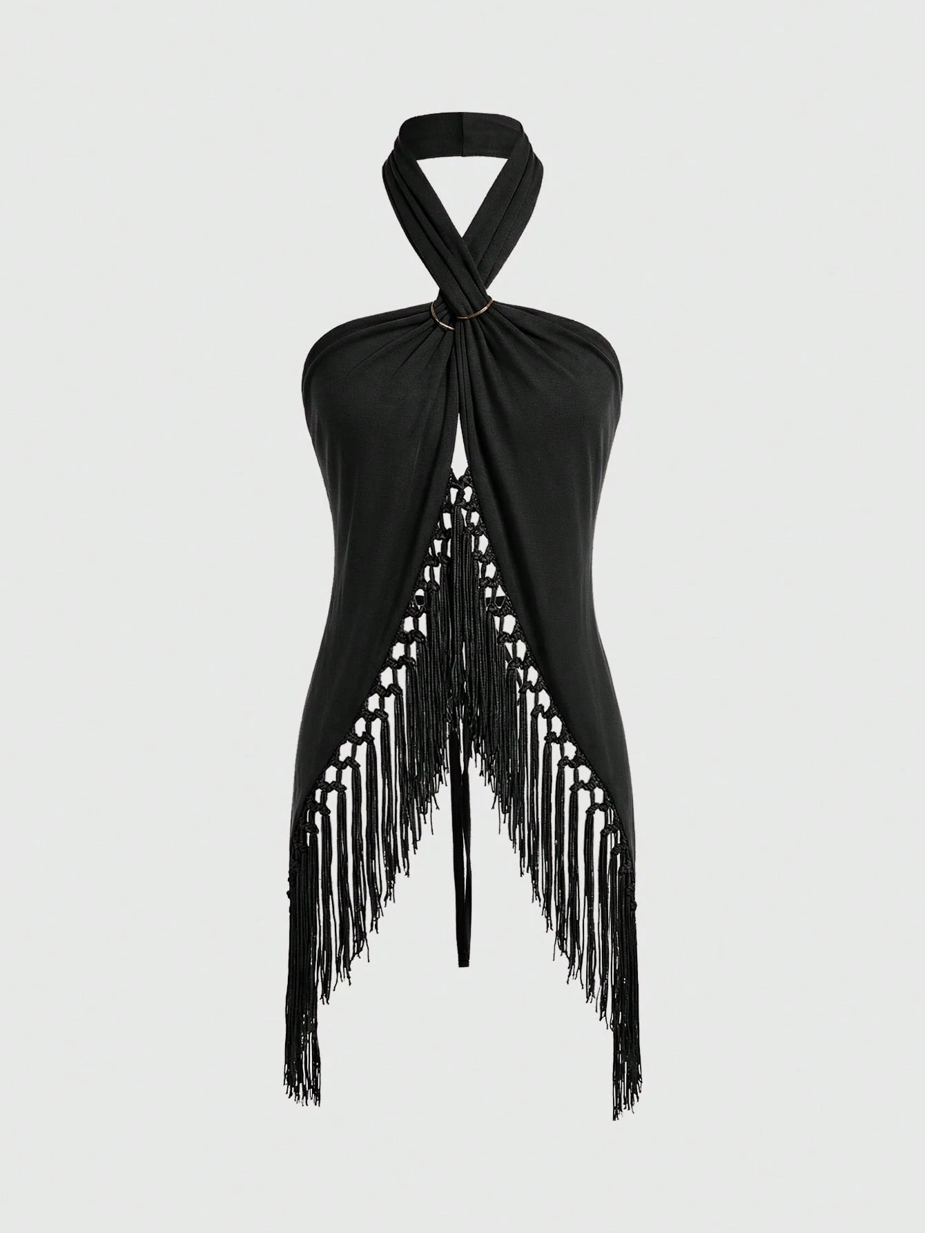 Hippie Blusa retrò da donna per vacanze, stile boho, con collo a canottiera, frange e orlo asimmetrico