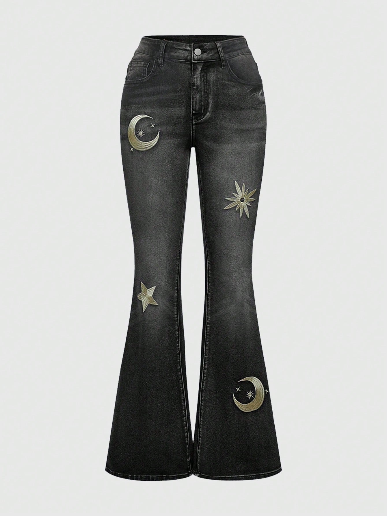 Hippie Jeans a vita bassa con gamba a zampa e ricamo sexy per donne